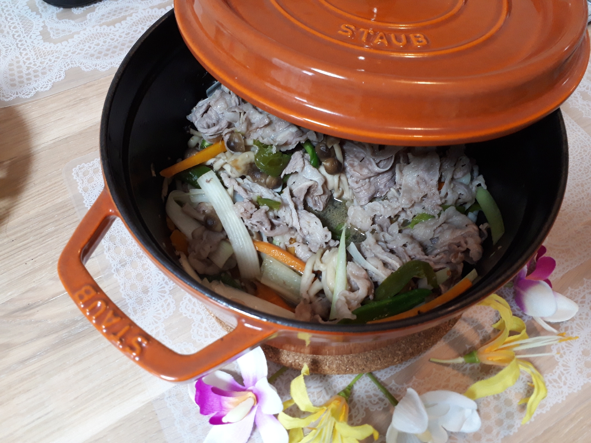 Staubで野菜とお肉の蒸し焼き メインおかず レシピ 作り方 By れもん 楽天レシピ